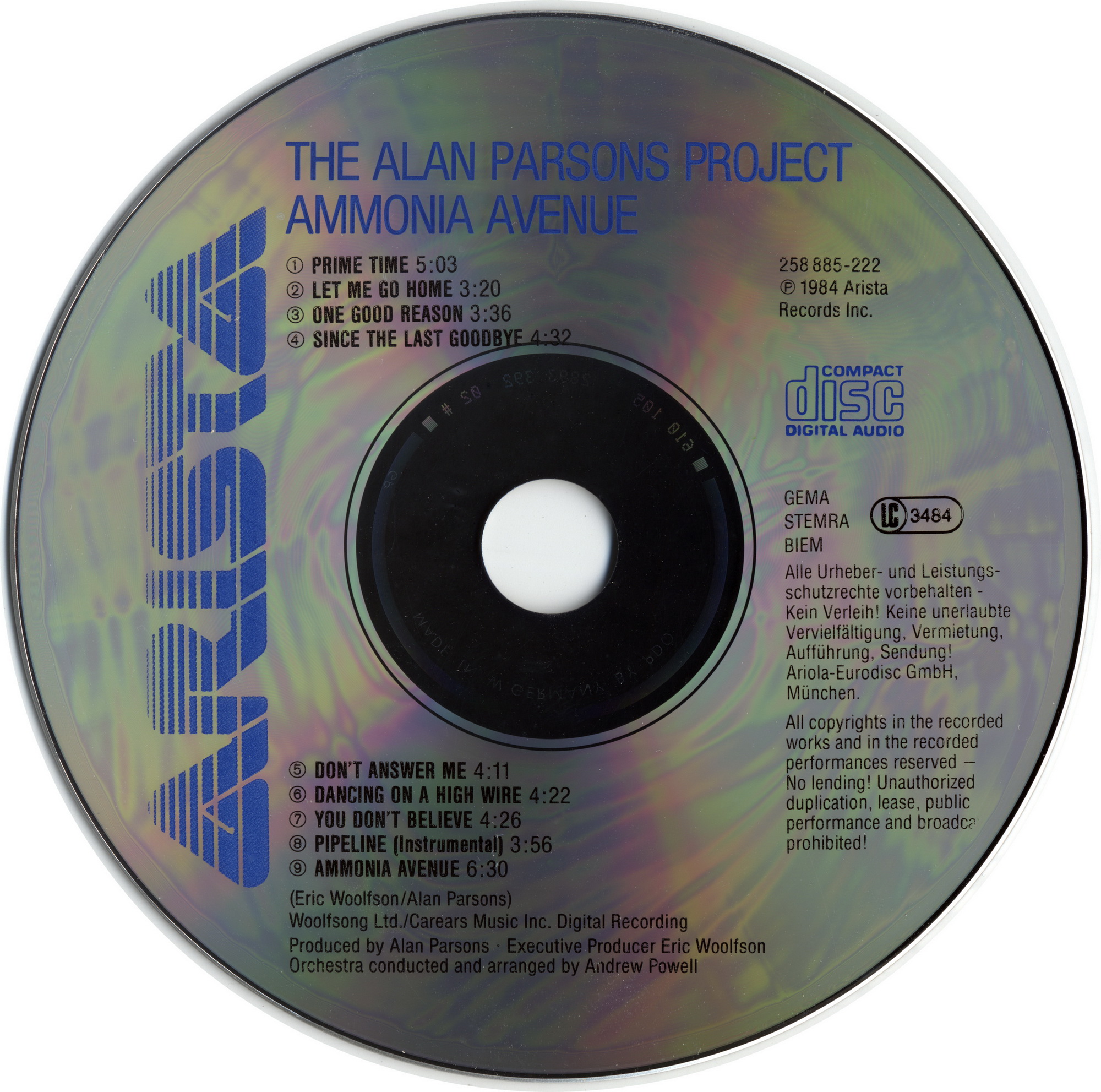 Index of /Max/music/Alan Parsons Project, The/_нр/Alan Parsons.AAC/Alan Parsons Project/Albums/1984 - Ammonia Avenue (1984, Arista 258 885, Germany)/Scans