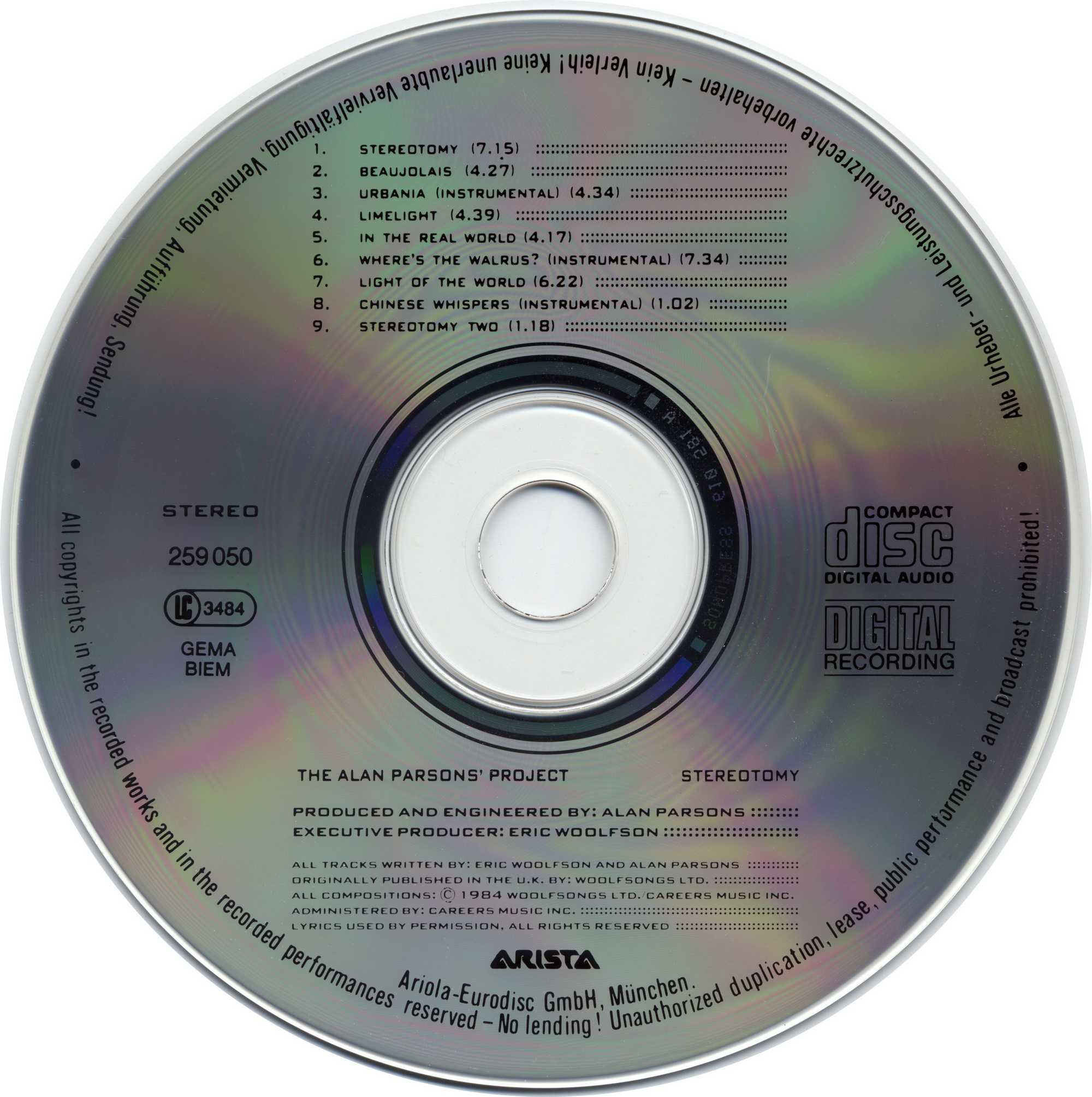 Index of /Max/music/Alan Parsons Project, The/_нр/Alan Parsons.AAC/Alan Parsons Project/Albums/1985 - Stereotomy (1985, Arista 259 050, Germany)/Scans
