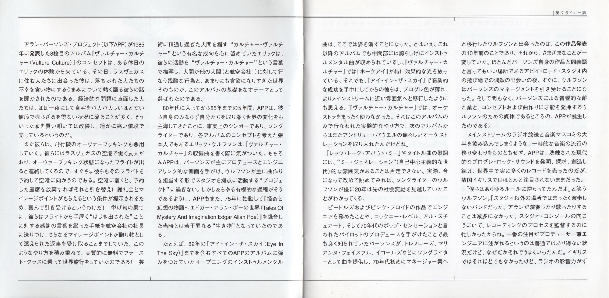 Index of /Max/music/Alan Parsons Project, The/_нр/Alan Parsons.AAC/Alan Parsons Project/RMs/1985 - Vulture Culture (2009 RM Expanded Edition, Arista BMG BVCM-35582, Japan)/Scans