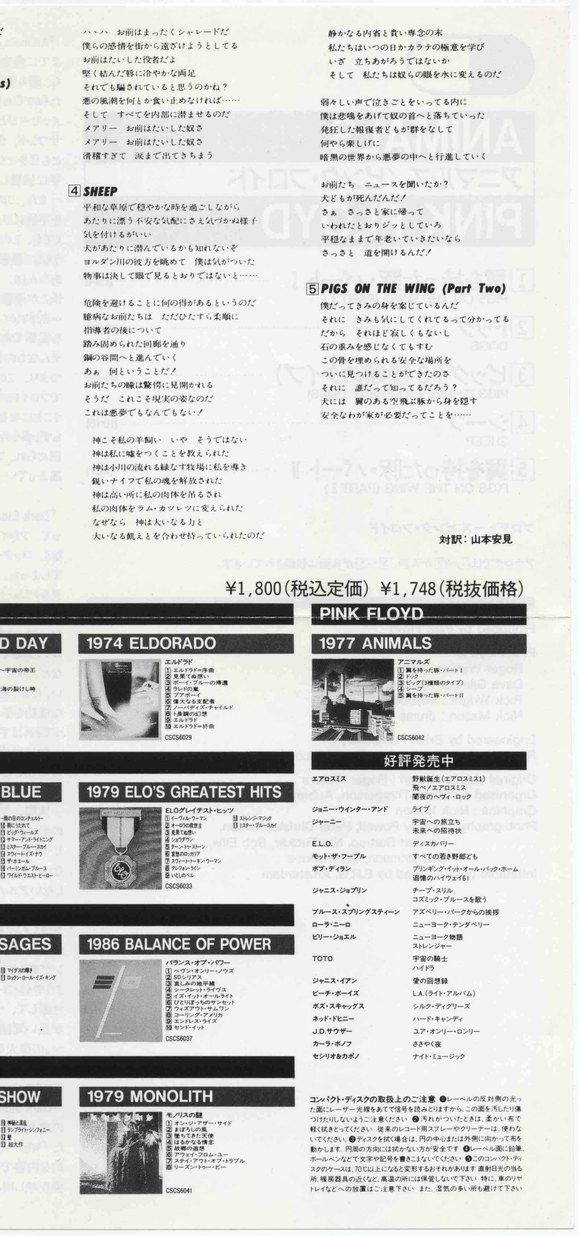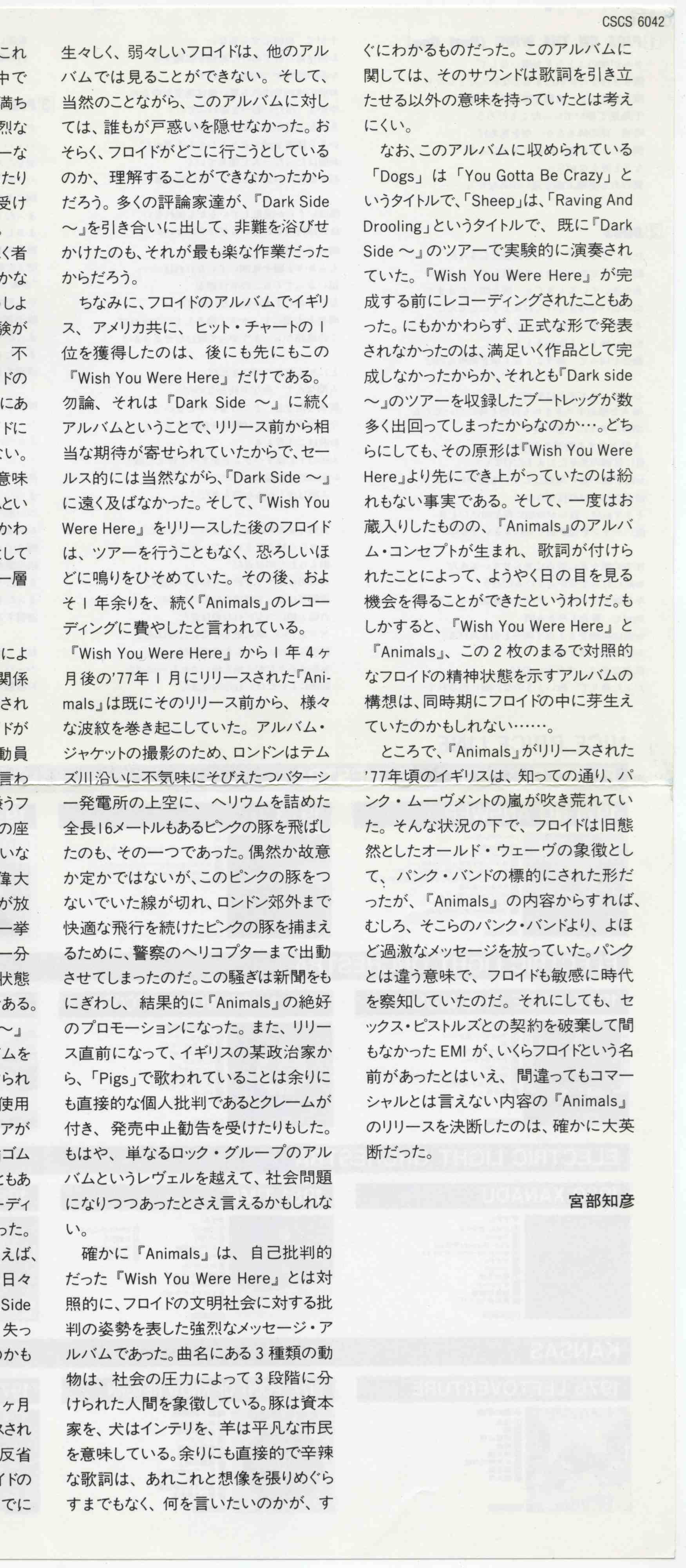 Index of /Max/music/Pink Floyd -/Pink Floyd - Studio Discography/1977 Animals/(CSCS 6042) [4th Japan] - Scans only!!!/Scans/LowRes