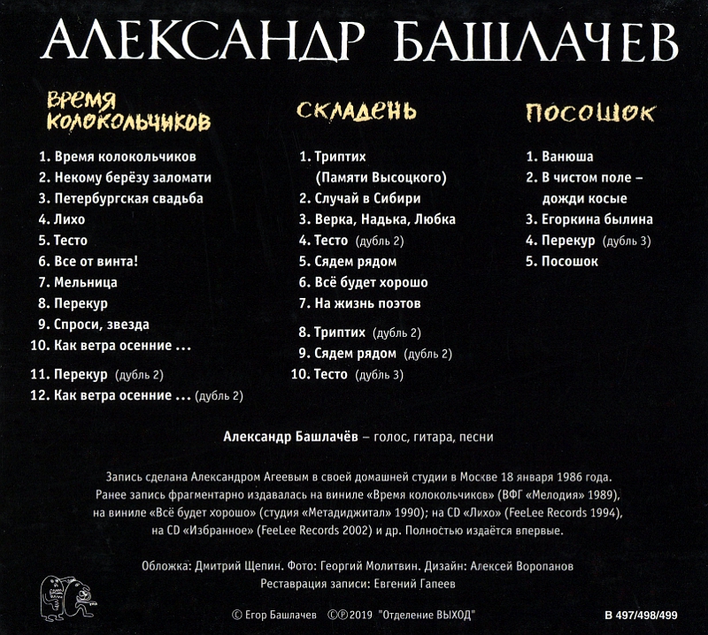 Index of /Max/music2/.нр/Александр Башлачёв ● Дискография/1986 ● Время колокольчиков (2019, Отделение ВЫХОД, В 497 ~ В 498 ~ В 499, 3CD)/CD3 Посошок