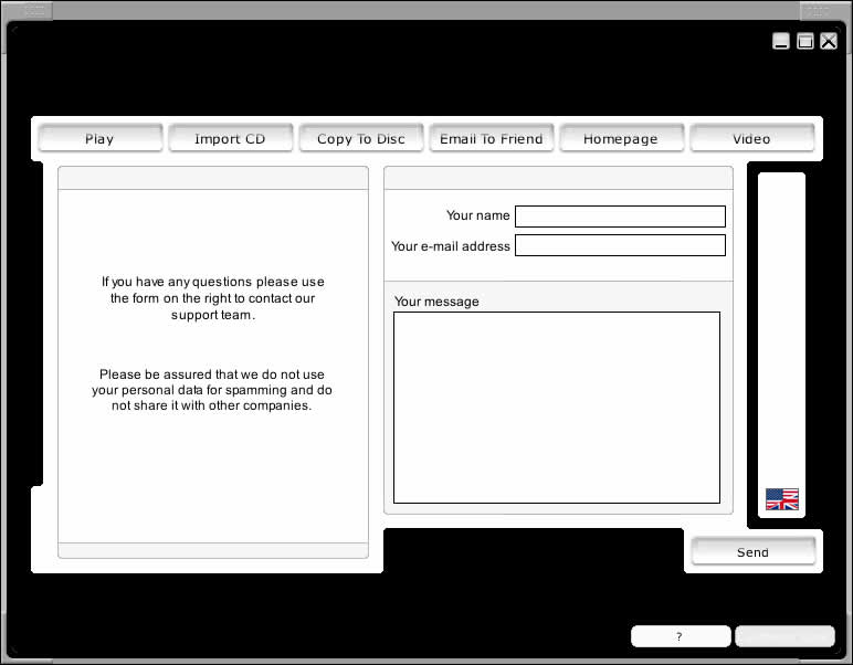 Kontakt Über die Schaltfläche "Kontakt" im unteren rechten Feld des Players können Sie sich mit unserem Support Team in Verbindung setzen und via E-Mail spezielle Hinweise senden, Feedback geben, Wünsche äussern, usw.